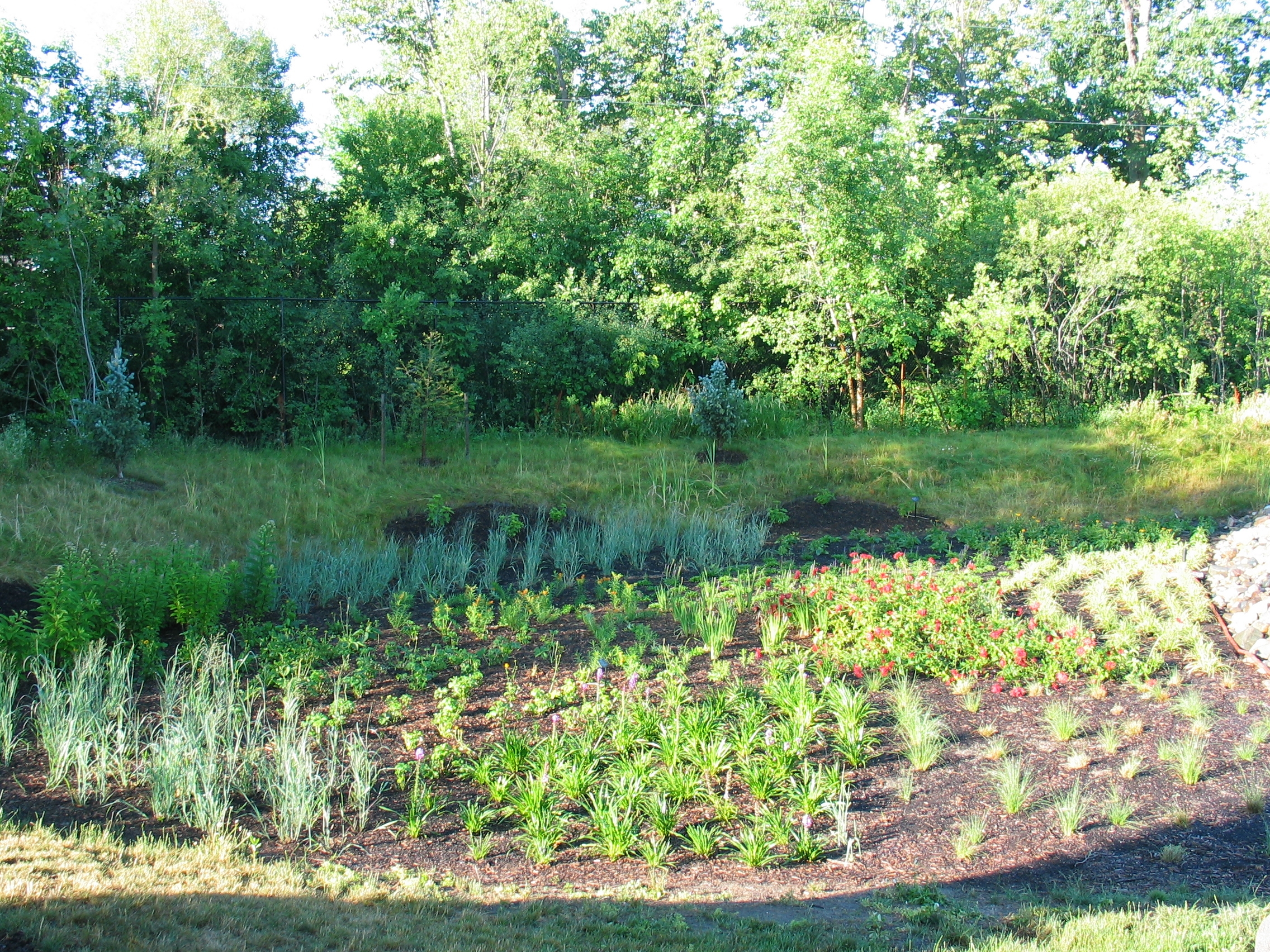 3) Area di ristagno: questa depressione del terreno (normalmente di 10-20 cm) dove viene raccolta l’acqua, ne facilita l’evapotraspirazione e ne permette l’infiltrazione nel suolo.